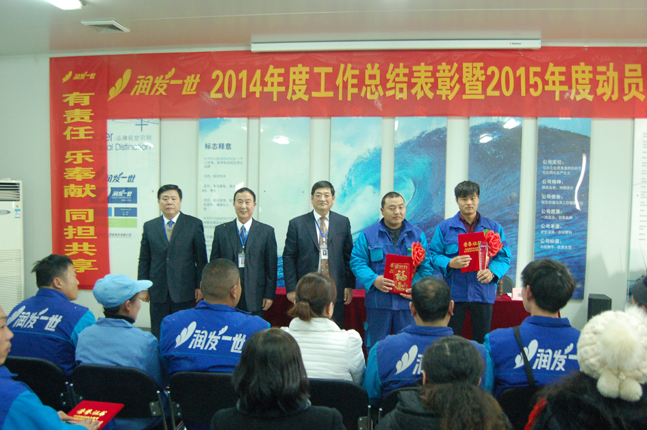 2015年2月10日,润发一世在生产基地展示大厅隆重召开了2014年度工作总结表彰暨2015 年度动员大会,公司总经理艾明亮和领导班子成员、全体先进代表、管理部门员工100余人参加了会议。