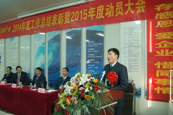 公司总经理艾明亮先生就如何稳步推进公司2015年各项工作,保持公司健康发展做了重要讲话,艾总指出:2014年,是压力与挑战并存的一年,在这一年里,面对复杂多变经济形势和激烈无序的市场竞争局面,公司全体员工在董事会的正确领导下,妥善应对市场大环境的变幻,适时调整经营思路和方略,公司全体员工能够认清形势、坚定信念、统一思想、团结一致、求实创新、开拓进取,克服重重困难,以“保品牌、保市场、保利润指标”为奋斗目标,为推进企业健康稳定发展和全面完成董事会下达的2014年经营指标做出了积极贡献。