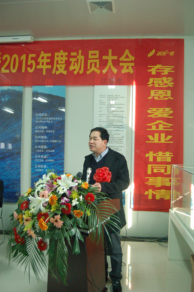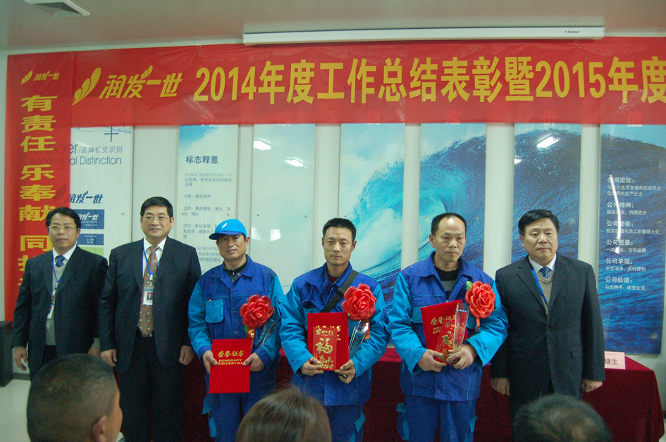 2015年,润发一世将迎难而上,继续朝着“一流企业,百年品牌,生产安全健康的饮用水造福社会”的公司愿景大踏步的前进!我们相信,在上级公司和董事会的领导下,润发一世必将在淮海大地上延续着自己的辉煌!
